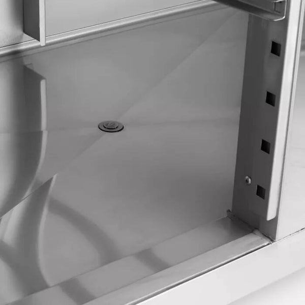 Malgré un poids de 180 kg, vous pouvez facilement déplacer ce réfrigérateur robuste grâce à ses quatre roues. Deux des roues sont équipées de freins afin que le réfrigérateur reste stable en place sans glisser. Grâce à son boîtier et à son intérieur en acier inoxydable, le réfrigérateur est également facile à nettoyer. Il suffit d'utiliser un chiffon humide et un détergent doux. Vous pouvez également utiliser de l'eau tiède et du savon pour nettoyer les étagères. Les portes sont équipées d'un joint en caoutchouc antibactérien, qui doit également être essuyé pendant le nettoyage. Après le nettoyage, veillez à sécher toutes les pièces avec un chiffon doux