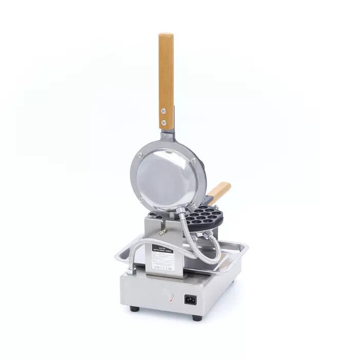 Servez aux clients les gaufres les plus délicieuses dans votre café, votre pâtisserie ou sur le marché. Avec ce gaufrier, vous pouvez faire des gaufres à bulles avec un extérieur croustillant et un intérieur moelleux. Créez une forme de bulle à l'ancienne dans ce gaufrier électrique très moderne. Le gaufrier peut être tourné, de sorte que les gaufres sont cuites uniformément jusqu'à ce qu'elles soient dorées en haut et en bas. La plaque en aluminium de ce gaufrier est dotée d'un revêtement antiadhésif pour que les gaufres ne collent pas. En outre, ce gaufrier à bulles est doté d'un puissant élément chauffant qui chauffe rapidement la plaque et la maintient facilement au chaud